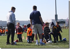 I didn’t get any pics of the actual game because aj had decided she was done at that point and wanted to play at the playground but he did great!! At first he wasn’t really sure about what to do but he soon joined the blob that followed the ball and had a great time!!